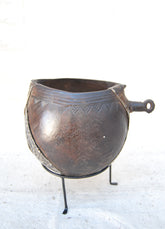 Lega or The Lega people are an ethnic group residing in the Democratic Republic of the Congo, primarily in the Kivu and Maniema provinces. They have a rich artistic tradition, including the production of various objects, such as sculptures, masks, and vessels. While there isn't a specific "Lega jug," I can provide a general description of the vessels created by the Lega people vessels may feature intricate carvings or incised patterns, depicting symbolic or abstract motifs that hold cultural or spiritual significance within the Lega community. These motifs may be associated with the Lega's belief system, rituals, or social structures.