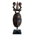 The Baule people are farmers who populate the eastern side of the Ivory Coast, being part of the Akan people who dwell in both Ghana and the Ivory Coast. Their art has been described as one of the most important tribal styles in the Ivory Coast. Using heavily stylized designs for statues and masks, their elegant craftsmanship is deeply spiritual. Their statues are made to reincarnate the spirit of the bush or to celebrate the other world ‘Blolo Bla’. The Baule people are also known for decorating everything in their tribe, especially everyday objects. The facial descriptions depicted on their statues illustrate exaggerated bulging eyes, raised scarification and ‘t’ shaped nose. Their masks, in particular the ‘Goli’ mask are highly ornamental and descriptive. Round flat masks are paired with giant horns protruding from the top of the mask. These masks are used for dances in harvest festivals, processions to honour distinguished visitors and also funeral.