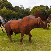 This magnificent life size Buffalo is sculpted from scrap metal by our master sculptor Washington, in Africa. The sheer size of this sculpture and the beautiful curve of its' muscles exemplifies the strength and dominance of one of Africa's famous Big Five.