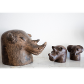 Rhino head sculpted from clay and sourced from Tanzania. These sculptural pieces are one of kind and offer endless styling opportunities.