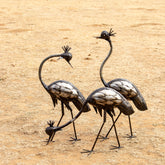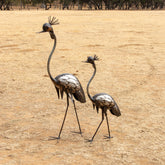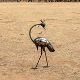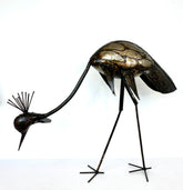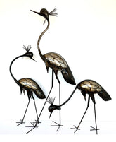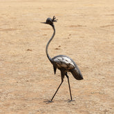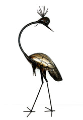 Lacquered Metal Crowned Crane with its' head up, head back, or head down.