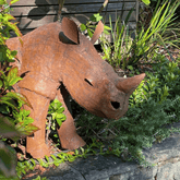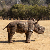 This Rhino is sculpted especially for Africanologie by our scrap metal artist, Washington, in Africa. They are available in a variety of sizes, including a baby without a horn. Individually or in a crash, they pack a punch in your landscape design.